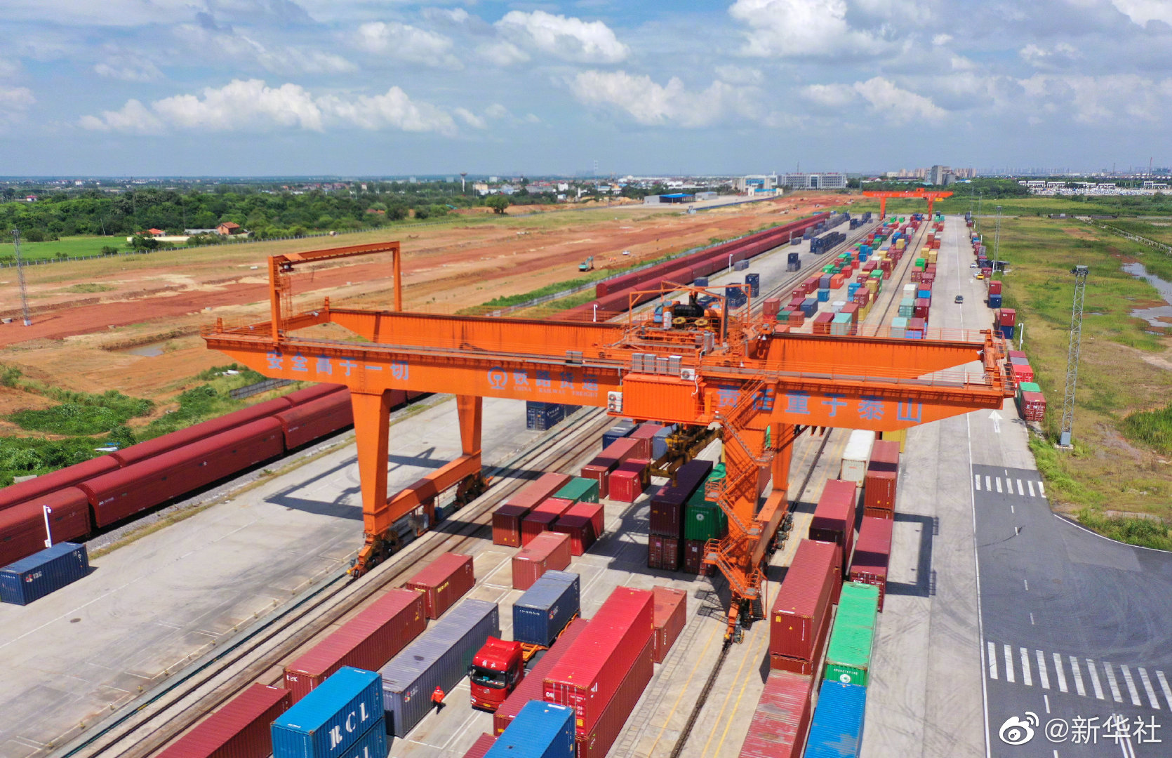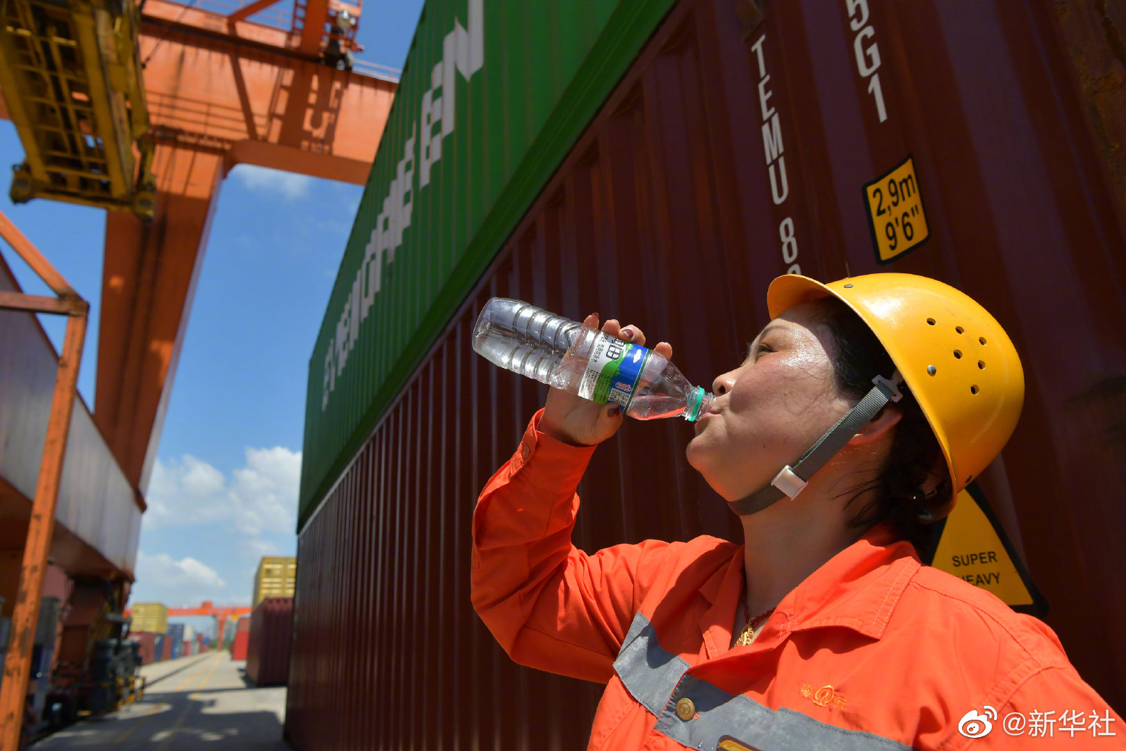 【#鐵路空姐一天裝卸100多個集裝箱#】“吳海英和其他幾位女司機(jī),技術(shù)很厲害,很能吃苦。”“特別細(xì)心,她們熱愛這份工作。”工友們口中的“女司機(jī)”駕駛的不是小汽車,而是十幾米高的大型門式起重機(jī)。吳海英是江西省南昌縣向塘鐵路物流基地的一名“龍門吊”司機(jī),被大家稱為鐵路“空姐”。炎炎夏日,她每天要爬上5層樓高的駕駛室進(jìn)行集裝箱裝卸作業(yè),每天裝卸100多個集裝箱。平均每個重達(dá)30噸的集裝箱經(jīng)她們裝卸操作,從這里運出,由鐵路運往海港,再發(fā)往世界各地。(記者彭昭之 顧天成)