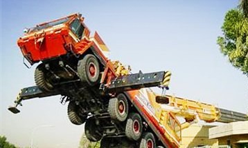 在起吊滿負(fù)荷時,只能收回起重臂(由大幅度變小幅度,由長起重臂變短起重臂),不能伸臂或落臂,否則會翻車。例如,在某施工工地,有一輛Q51型汽車起重機(jī)在回轉(zhuǎn)半徑為305m時可以起吊3t。這時起重機(jī)起吊2.6t并不超負(fù)荷,但是,由于信號的錯誤,指揮者叫司機(jī)起點(diǎn)臂,司機(jī)誤聽為落臂,就造車翻車事故。