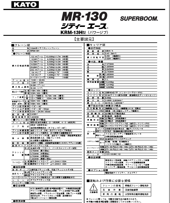 標(biāo)題:KATO 加藤MR130起重機性能表