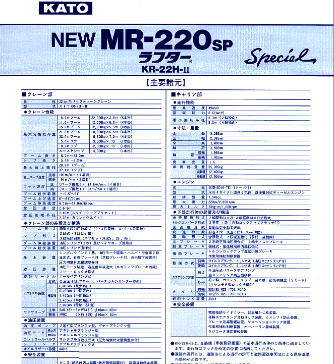 KATO 加藤M(fèi)R220SP起重機(jī)性能表