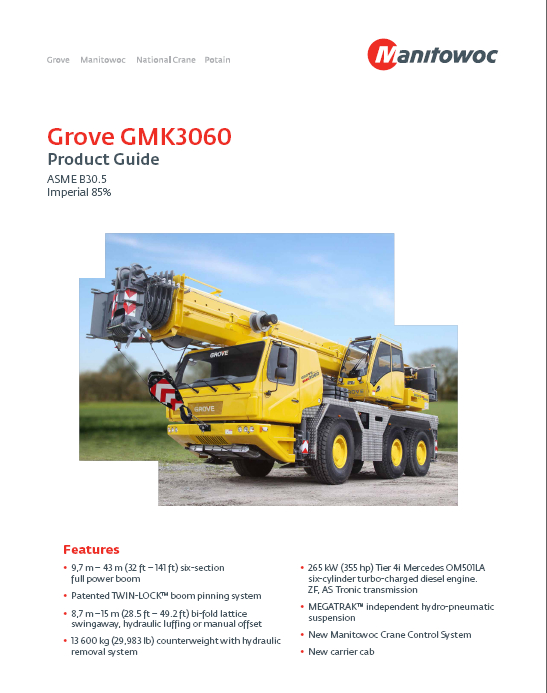 格魯夫GMK3060-1全地面起重機(jī)性能表