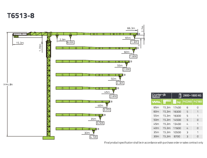 中聯(lián)T6513-8起重機性能表