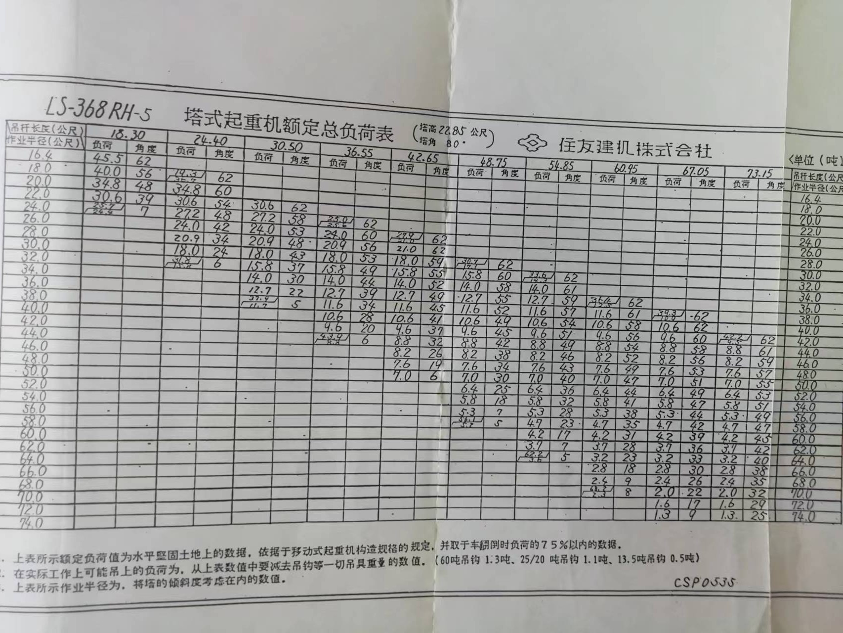 LS-368RH-5塔式起重機(jī)額定總負(fù)荷表