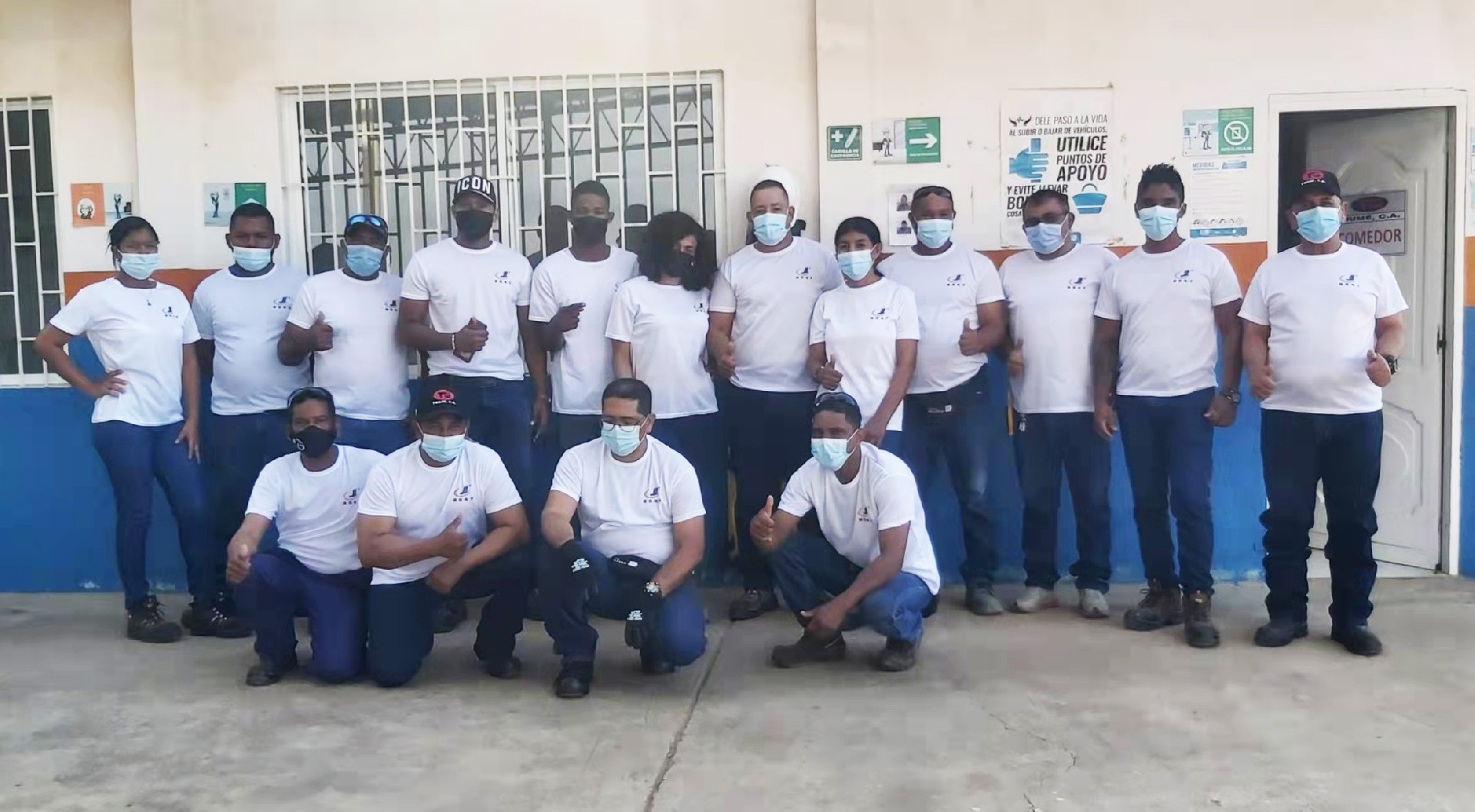 哥倫比亞小伙伴身穿精聯(lián)定制短袖合照