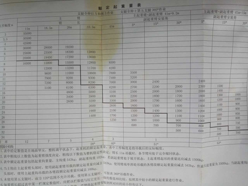 長江55T汽車吊性能表