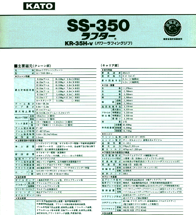 標(biāo)題:KATO 加藤SS350起重機(jī)性能表