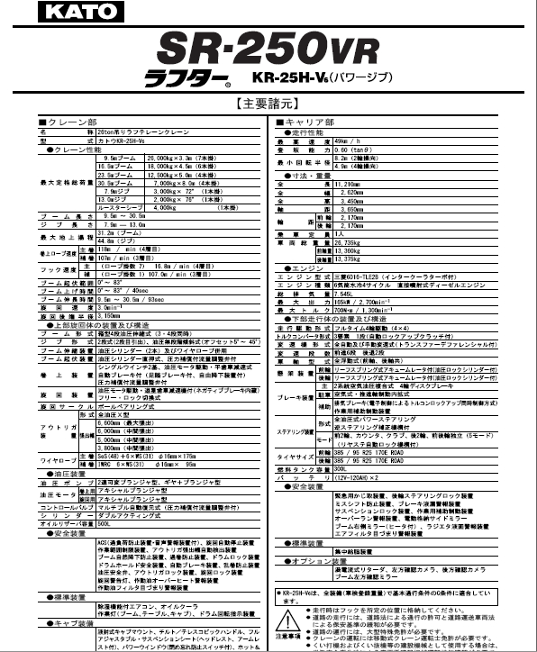 標題:KATO 加藤SR250VR-X-PJ起重機性能表