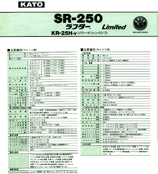 KATO 加藤SR250Limited起重機(jī)性能表