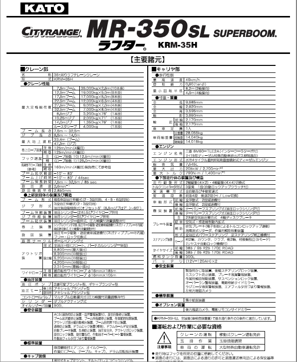 標(biāo)題:KATO 加藤MR350SL起重機性能表