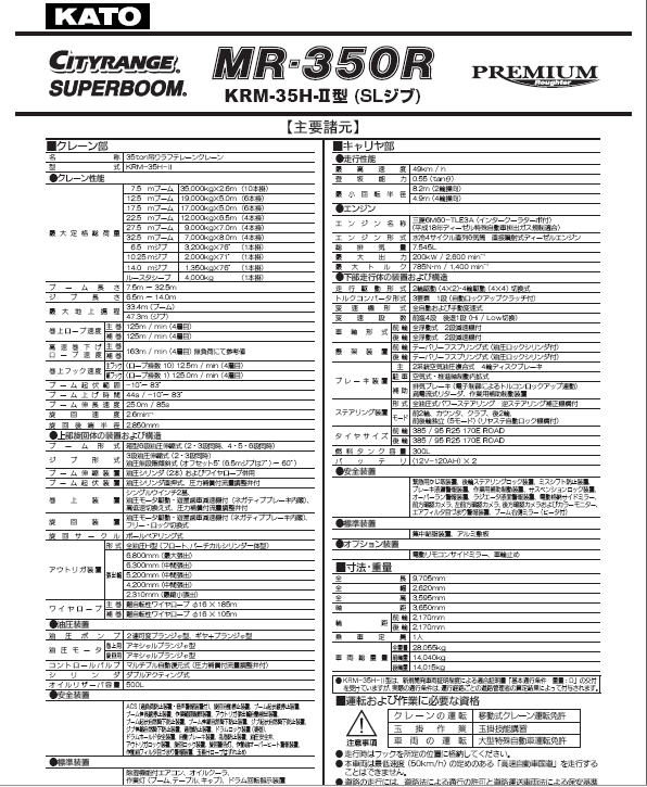 KATO 加藤M(fèi)R350R起重機(jī)性能表