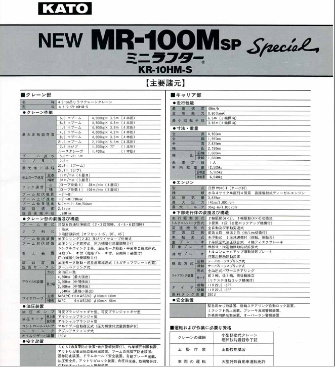 KATO 加藤M(fèi)R100MSP起重機(jī)性能表