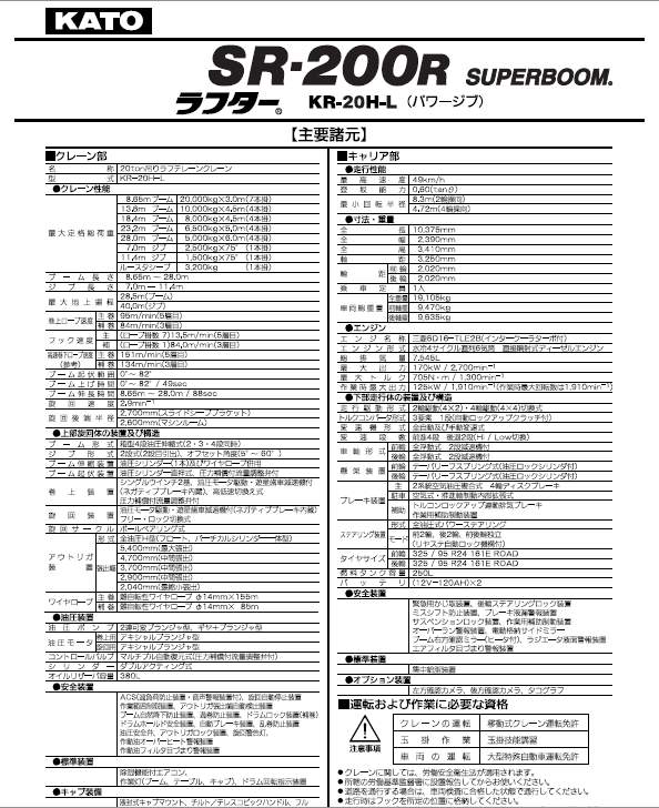 KATO 加藤SR200R-PJ起重機性能表