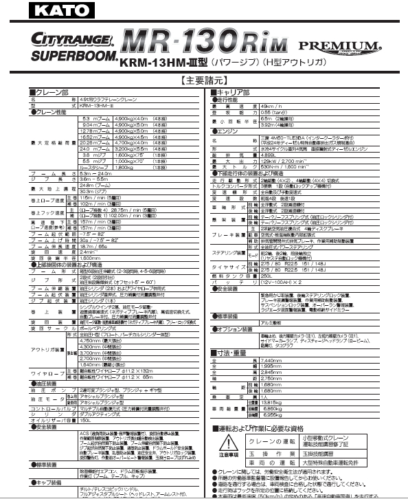 KATO 加藤M(fèi)R130RIM-X起重機(jī)性能表