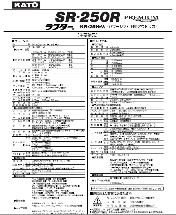 標(biāo)題:KATO 加藤SR250R-H起重機(jī)性能表