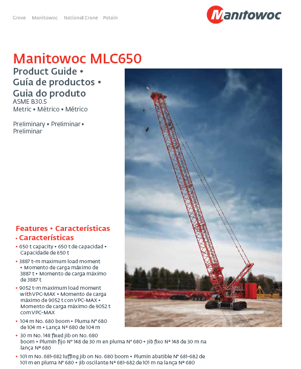 標(biāo)題:馬尼托瓦克MLC650-M-M履帶起重機性能表