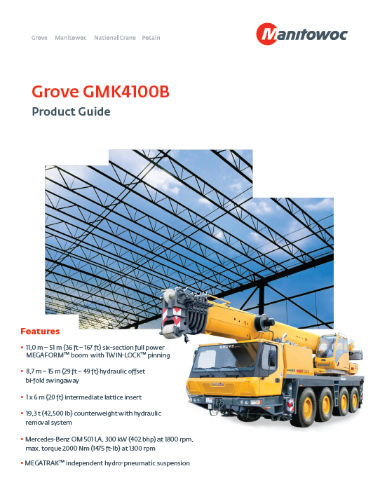 標(biāo)題:格魯夫GMK4100B全地面起重機性能表