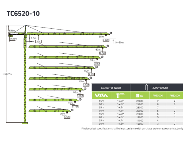 中聯(lián)TC6520-10起重機性能表