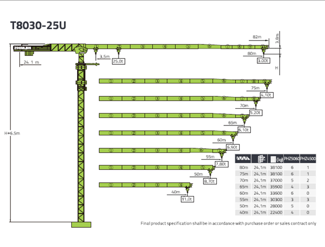標(biāo)題:中聯(lián)T8030-25U起重機(jī)性能表